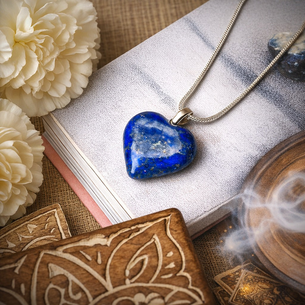 Lapis Lazuli, revered since ancient times, is a stunning deep blue gemstone known for promoting wisdom, intuition, and self-awareness. This heart-shaped pendant in 925 silver not only elevates your style but also supports emotional balance, inner harmony, and spiritual growth. Wearing a Lapis Lazuli Pendant is believed to encourage self-expression, deepen insight, and protect against negative energies, making it a meaningful accessory for everyday wear or special occasions.