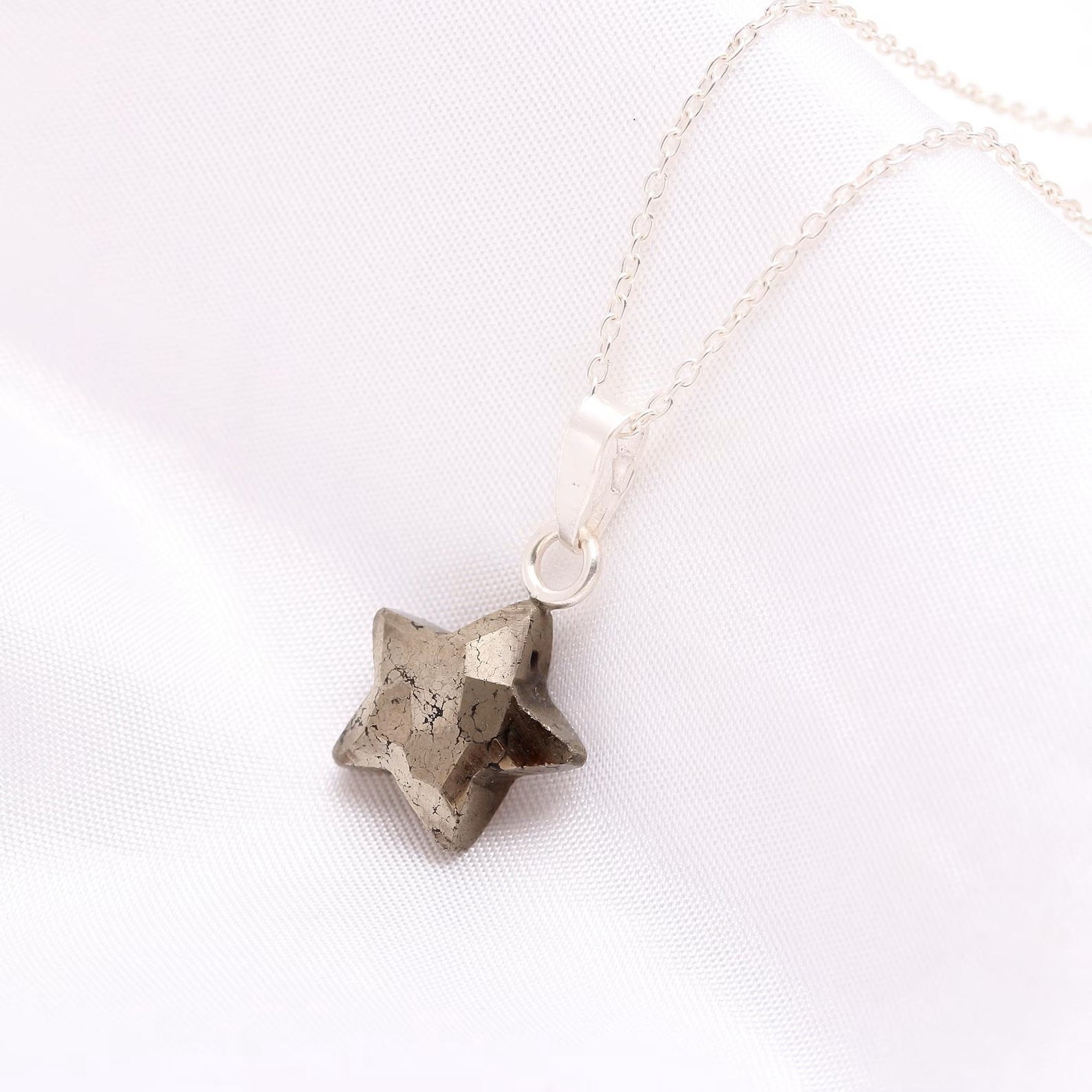Pyrite, also known as “Fool’s Gold,” is a powerful gemstone admired for its golden metallic luster and strong protective energy. Wearing a Pyrite Pendant not only enhances your style but also brings courage, abundance, and positive energy into life. Pyrite is believed to attract wealth, stimulate creativity, and protect against harmful vibrations, making this pendant both fashionable and spiritually beneficial.