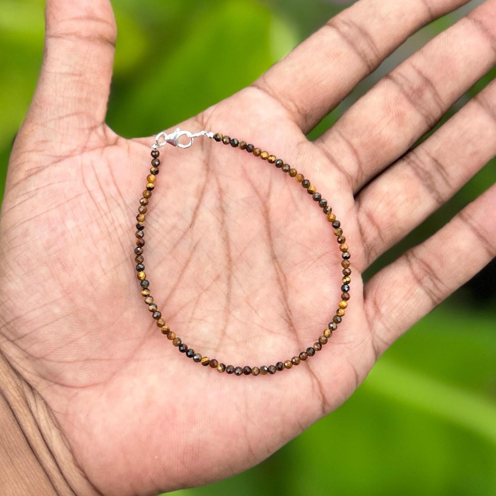 Triple Protection Anklet — crafted in with black tourmaline, hematite & tiger’s eye 2mm faceted beads